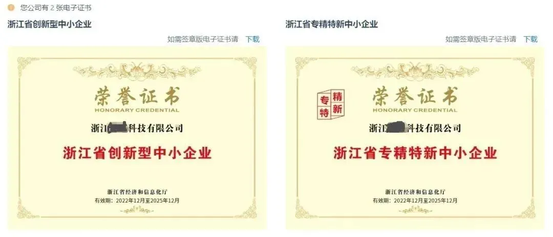 和浙江省专精特新中小企业
