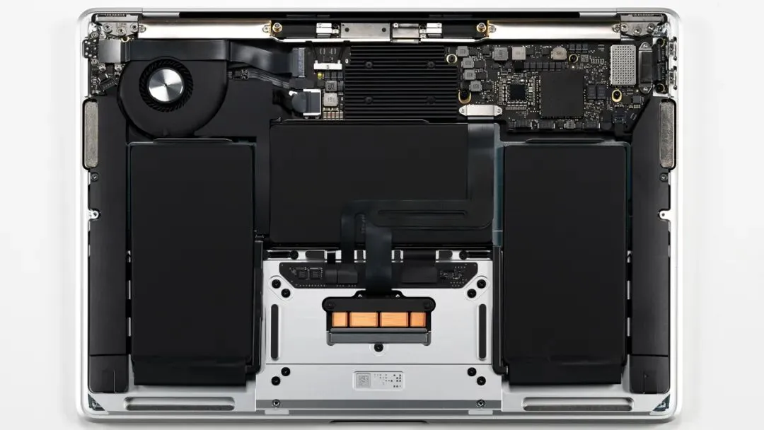 值得一提的是,风扇上方那一条金属条,在左右两侧都有开口,正对着风扇和T2芯片的位置。