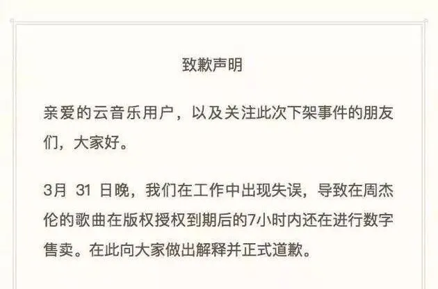 平台方面工作的严重失误,导致这些歌曲在版权到期后 7 小时内依然可以下载。