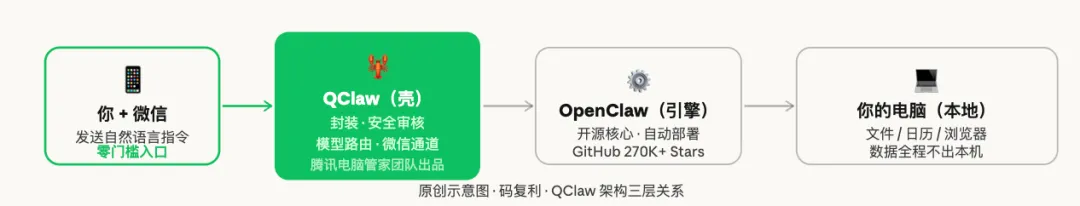 你不需要懂编程,不需要服务器,不需要 API Key,甚至不需要打开电脑——拿起手机,在微信里发一句话,AI 就替你搞定了。这就是 QClaw 要做的事。本篇码复利手把手带你完成从下载到第一个任务的全过程。