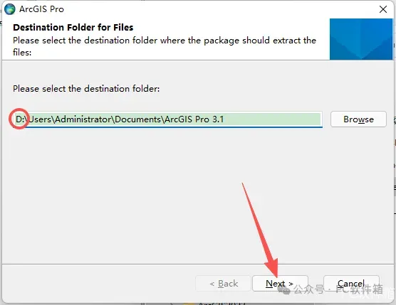 7.修改路径地址中的第一个字符C可更改解压位置(如:把C改为D软件将解压到D盘),点击【Next】。