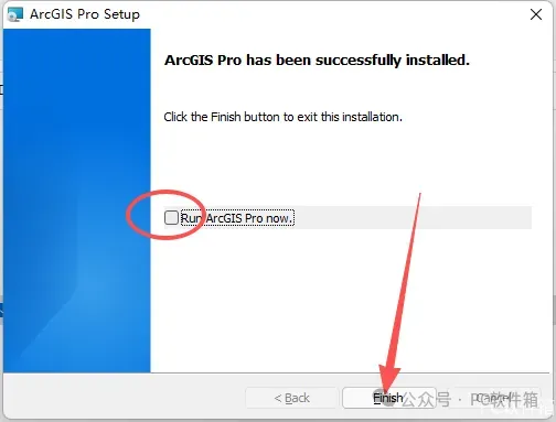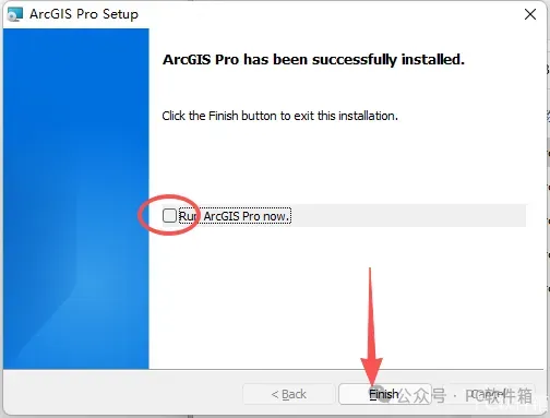 18.取消勾选【Run ArcGIS…】,点击【Finish】。