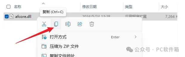 35.鼠标右击【afcore.dll】选择【复制】。