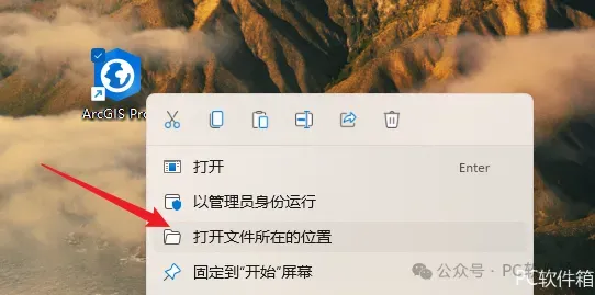 37.鼠标右击拖到桌面的【ArcGIS Pro】图标选择【打开文件所在的位置】。