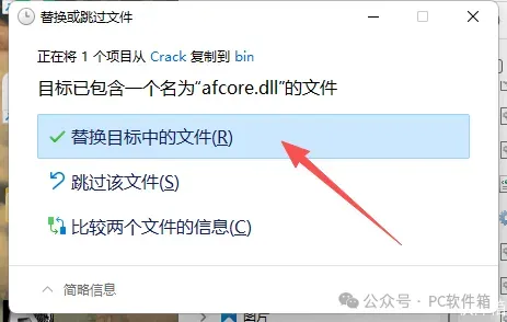 39.点击【替换目标中的文件】。