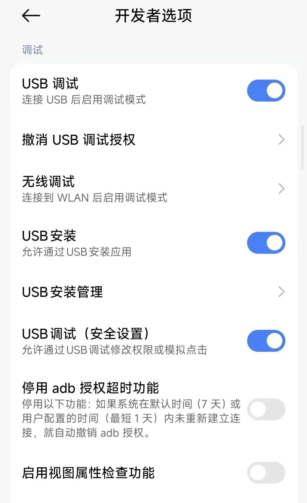 如果鼠标无法控制屏幕,那么打开USB调试(安全设置)
