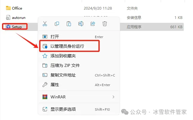 3.鼠标右击【Setup】选择【以管理员身份运行】。