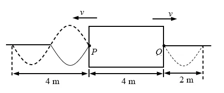均匀介质中矩形区域内有一位置未知的波源。t=0时刻,波源开始振动产生简谐横波,并以相同波速分别向左、右两侧传播,P、Q分别为矩形区域左右两边界上振动质点的平衡位置。t=1.5 s和t=2.5 s时矩形区域外波形分别如图中实线和虚线所示,则( )