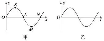 第5题 (2020·北京卷·6)一列简谐横波某时刻波形如图甲所示.由该时刻开始计时,质点L的振动情况如图乙所示.下列说法正确的是( )