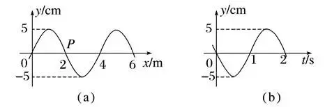 一列简谐横波沿x轴传播,图(a)是t=0时刻的波形图;P是介质中位于x=2 m处的质点,其振动图像如图(b)所示。下列说法正确的是( )(多选)
