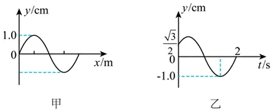 第7题(2024·重庆卷·10)(多选)一列沿x轴传播的简谐波,在某时刻的波形图如图甲所示,一平衡位置与坐标原点距离为3米的质点从该时刻开始的振动图像如图乙所示,若该波的波长大于3米。则( )