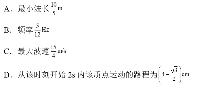 第9题(2021·辽宁卷·7)一列沿x轴负方向传播的简谐横波,t=2 s时的波形如图(a)所示,x=2 m处质点的振动图像如图(b)所示,则波速可能是( )