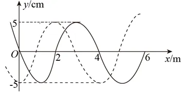 【考查知识点】 波长、波速、频率的关系及波的图像。由“A点波谷、B点波峰、之间还有一个波谷”可确定A、B间距为1.5λ,得λ=4 m;频率f=1 Hz,波速v=λf=4 m/s;周期T=1 s,经0.5 s即T/2,A点从波谷到波峰,速度为零。