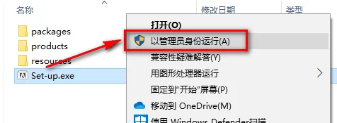 2.找到并选中Set-up,鼠标右键点击“以管理员身份运行”