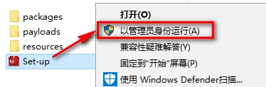 3.先断网,找到并选中Set-up,鼠标右键点击“以管理员身份运行”