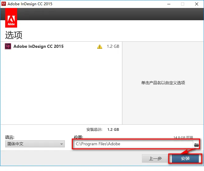 13.第一个选项卡选择Adobe InDesign CC 2015,点击“Install”