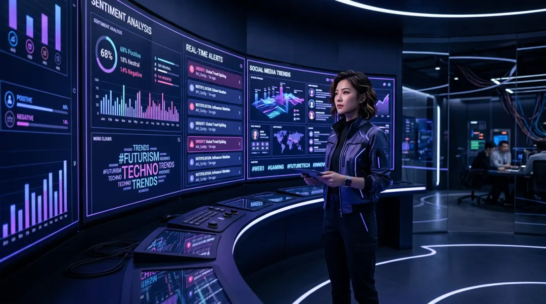 评论情感分析:正面/中性/负面比例 话题传播趋势:品牌相关标签热度变化 竞品动态追踪:竞品发布内容数量和播放趋势 负面预警推送:高风险内容自动标记,10 分钟内给出处置方案 10 分钟内发现并处置,和 48 小时后才反应,结果天壤之别。