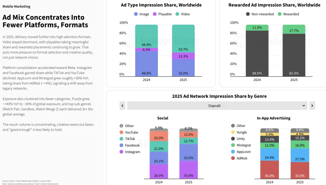 |2025 年手游广告投放正在加速集中:更集中到少数平台,也更集中到高注意力广告形式。