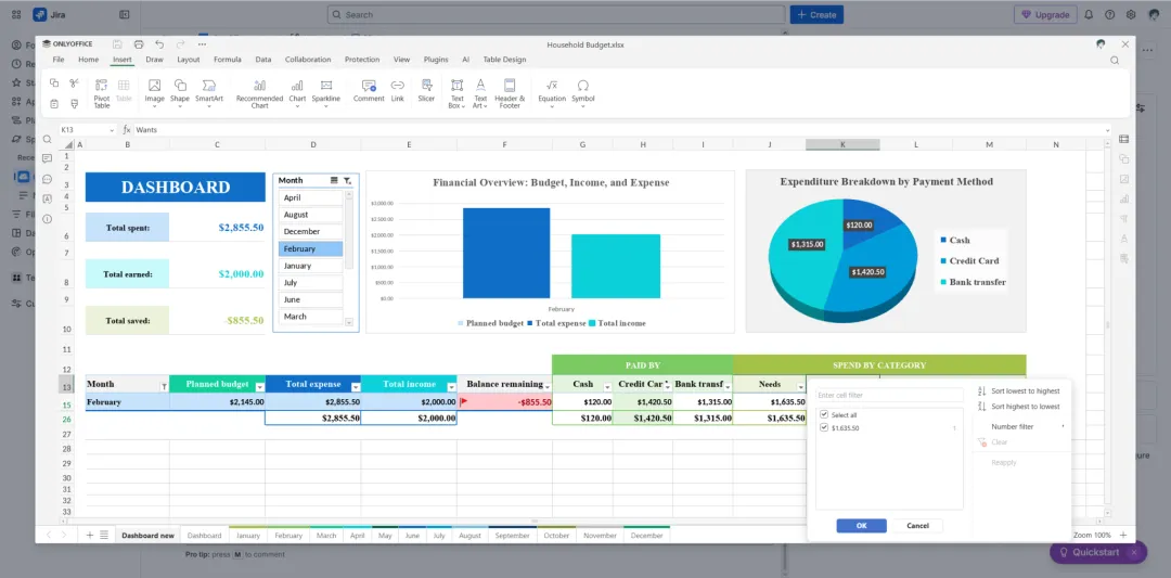 ONLYOFFICE 连接器让 Jira Cloud 用户能够打开文档、电子表格、演示文稿和 PDF 文件进行进一步编辑。借助丰富的格式与样式选项、数据处理功能及演示工具,您可以直接在 Jira 控制面板中轻松编辑附加到问题的 Word、Excel 和 PowerPoint 文件。