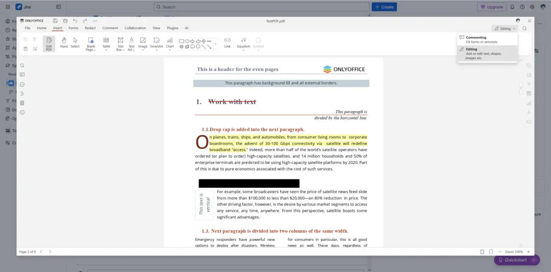 ONLYOFFICE 连接器将 ONLYOFFICE PDF 编辑器引入 Jira Cloud,让用户能够直接在 Jira 事务中查看及编辑 PDF 文件: