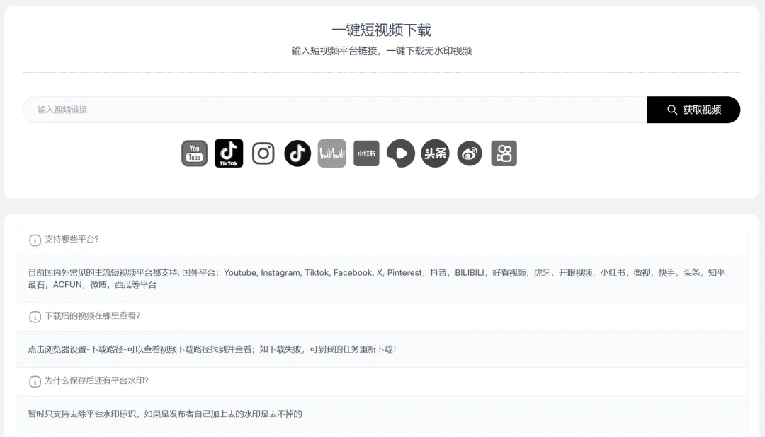 🔴 全网短视频无水印下载 — 抖音/B站/小红书/快手/油管/TikTok/Ins 全平台支持,4K高清随便下