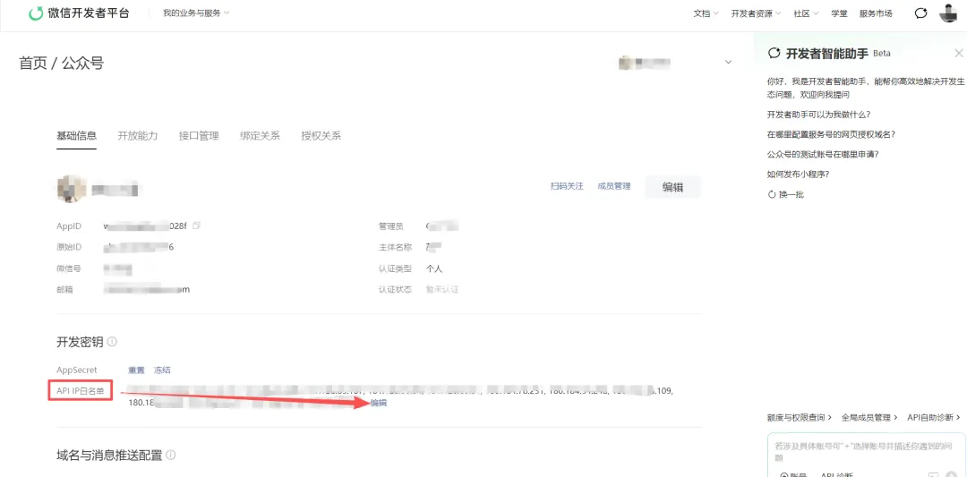 上面还差一步:添加IP白名单