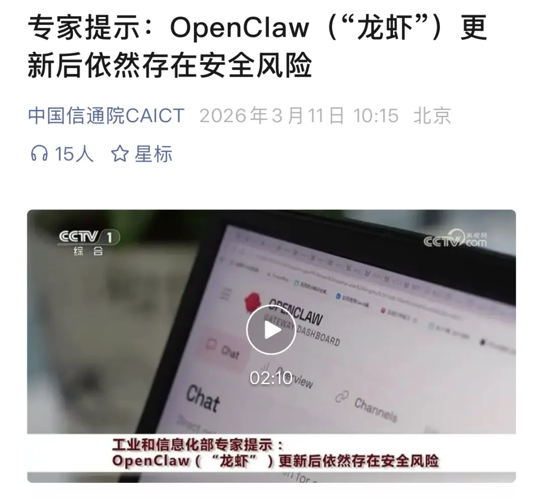 有专家更是一针见血地指出:OpenClaw“具有自主决策和调用系统资源等高权限特点,加之系统信任边界模糊,且技能包市场目前缺乏严格的安全审核,内部潜藏着诸多隐患”,即使更新到最新版本,“也并不意味着安全风险被彻底消除”。