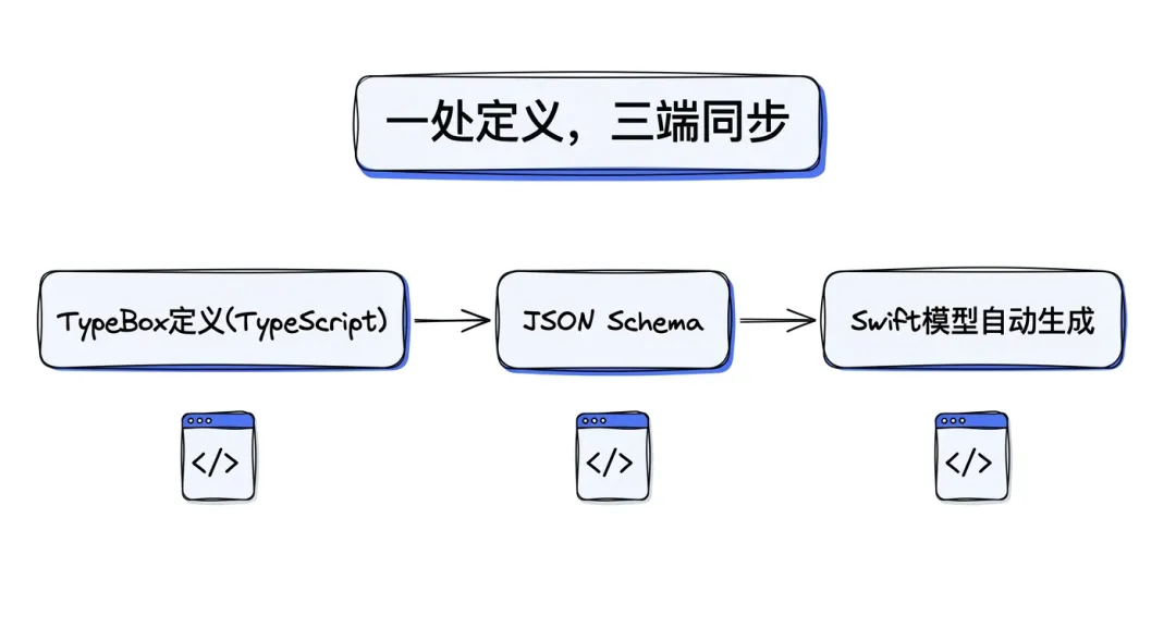 这意味着:改一处类型定义,TypeScript、JSON Schema、Swift 三端同步更新。不会出现"API 改了但客户端没跟上"的经典灾难。