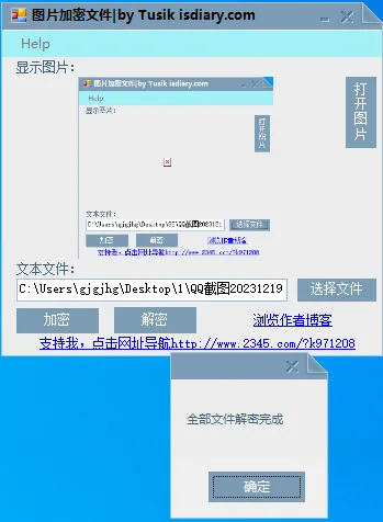 解密也一样,选图片、选路径,直接开搞。