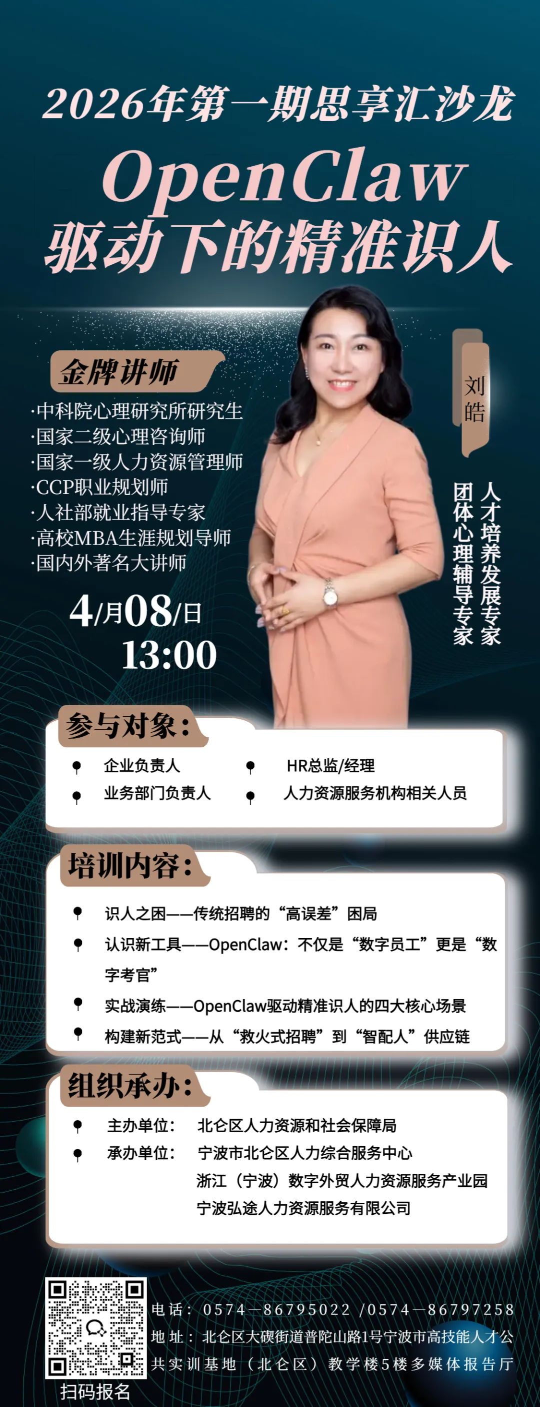 本次沙龙特邀人才培养发展专家刘皓老师,带你用 AI 新工具 OpenClaw 破解识人难题,从 “救火式招聘” 迈向 “智配人” 供应链!