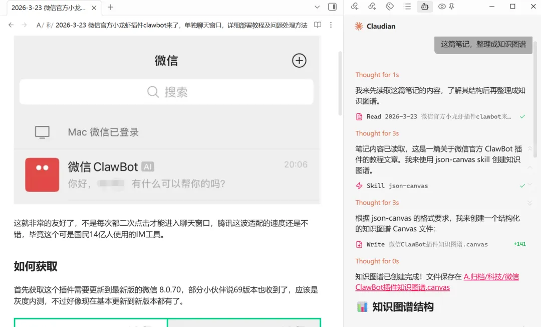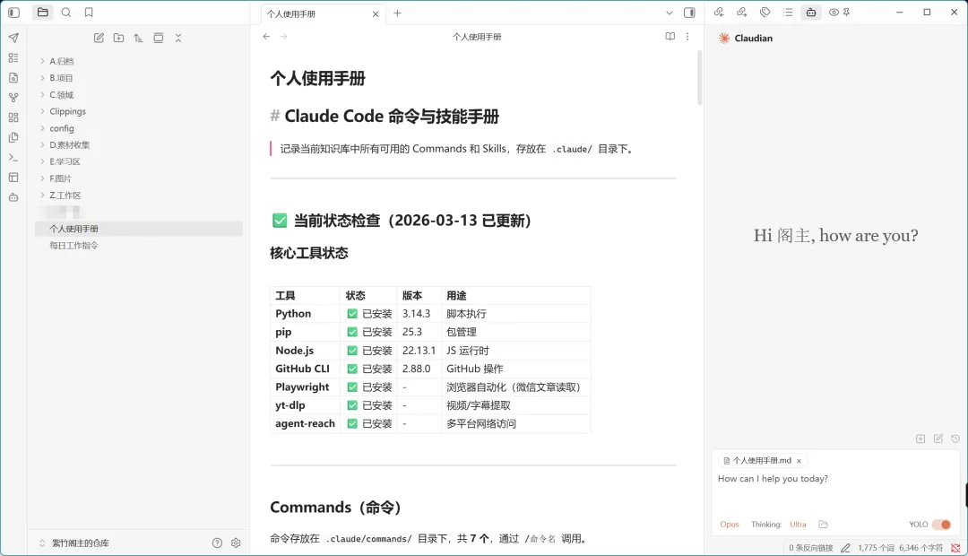 Claudian是理解层:它扎根在你的知识库里,理解你的笔记结构、链接关系。