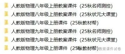 25秋人教版物理8-9年级上下册教学资料包(多套)。现将免费与大家共享。 领取电子版请拉至文末