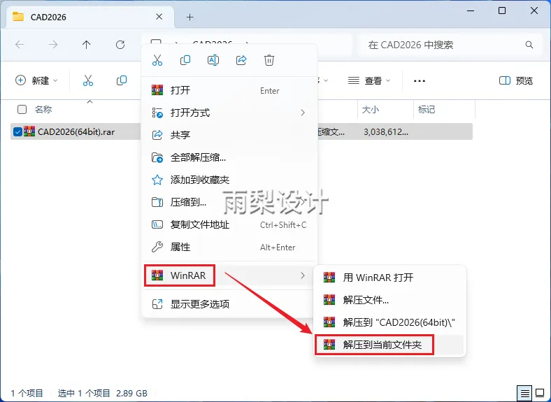 1.右键【下载的安装包】选择【解压当前文件夹】