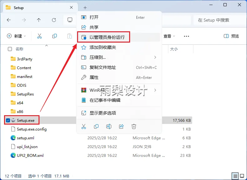3.右键【Setup.exe】选择【以管理员身份运行】