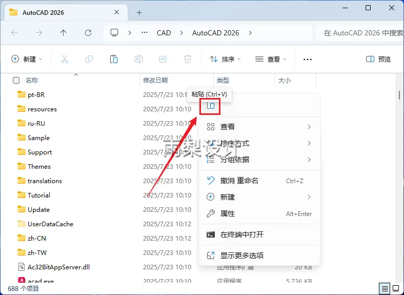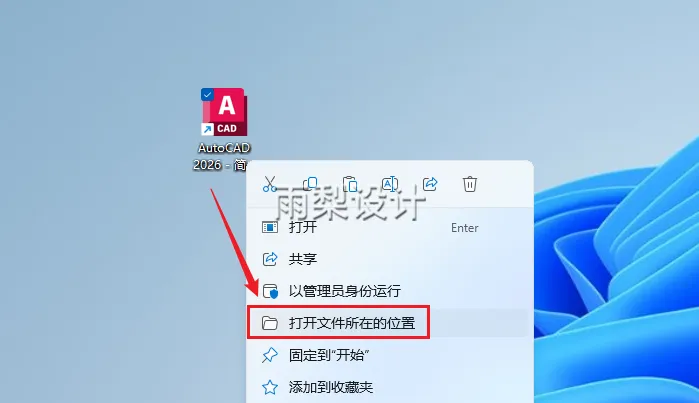 12.右键【AutoCAD 2026-简体中文】选择【打开文件所在的位置】