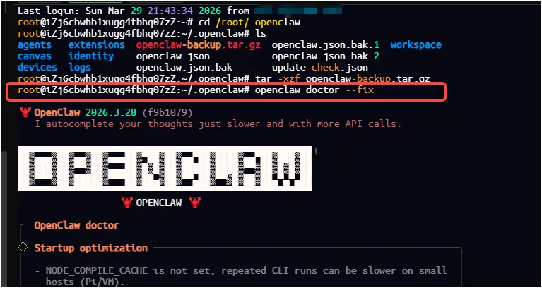 迁移后的OpenClaw,就像大病初愈的病人。外表看起来正常,但内在可能还有很多问题。