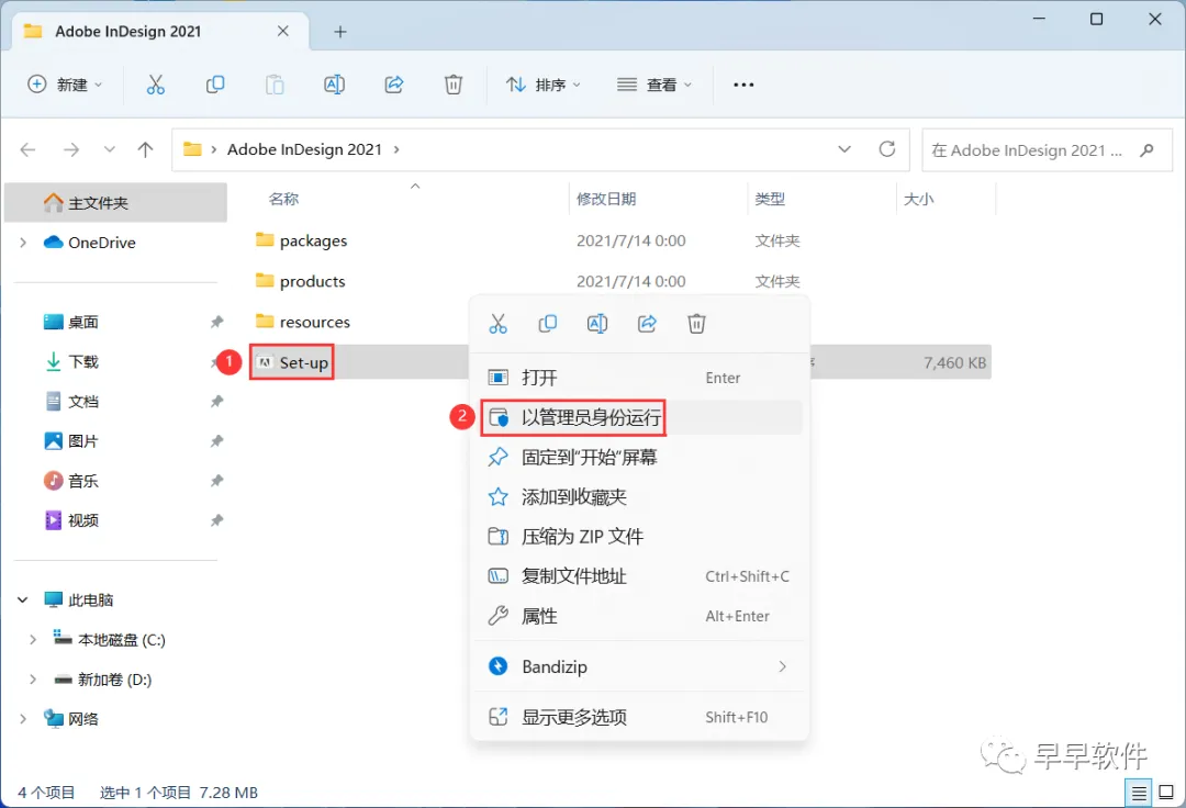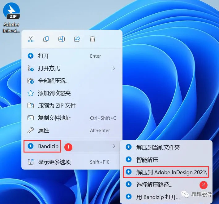 1、下载Adobe InDesign 2021软件安装包到电脑上,右键选择【解压到Adobe InDesign 2021\】