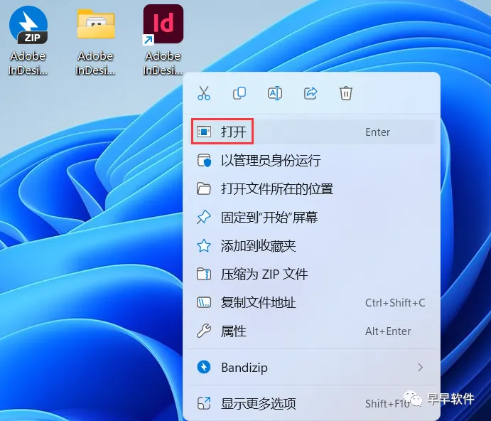 7、回到桌面,右键桌面上的【Adobe InDesign 2021软件图标】,点击【打开】