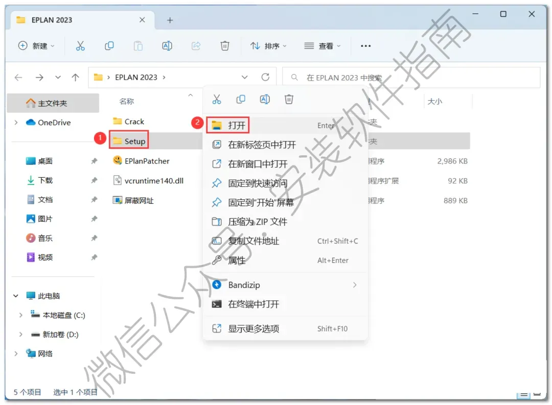 16、回到EPLAN 2023文件夹,找到【EPlanPatcher】应用程序,右键选择【以管理员身份运行】它