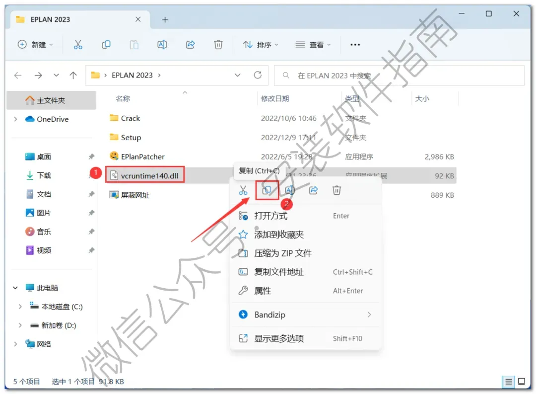 13、返回到EPLAN 2023文件夹,找到【vcruntime140.dll】应用程序,右键点击【复制按钮】