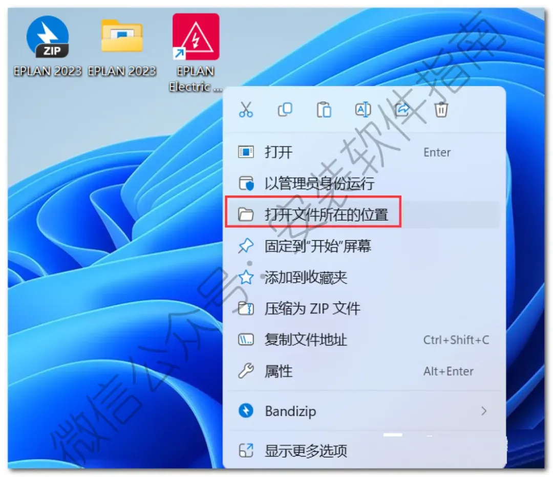 14、回到桌面【EPLAN Electric P8 2023】图标选择【打开文件所在的位置】