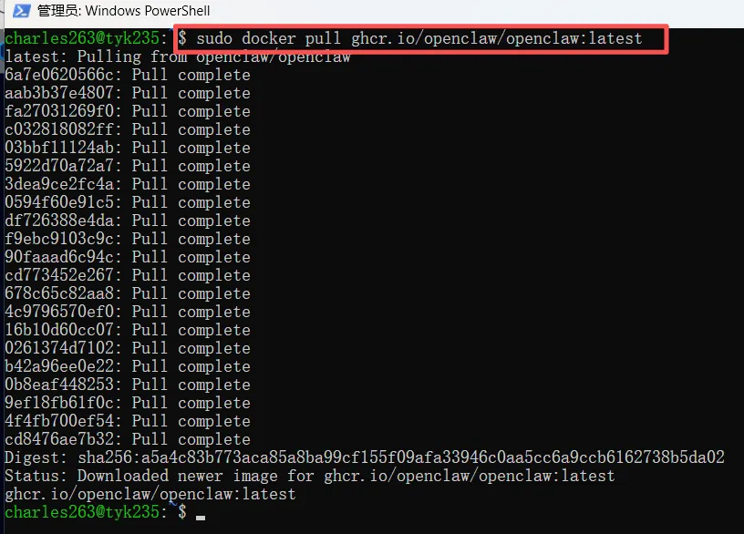 # bashsudo docker pull ghcr.io/openclaw/openclaw:latest