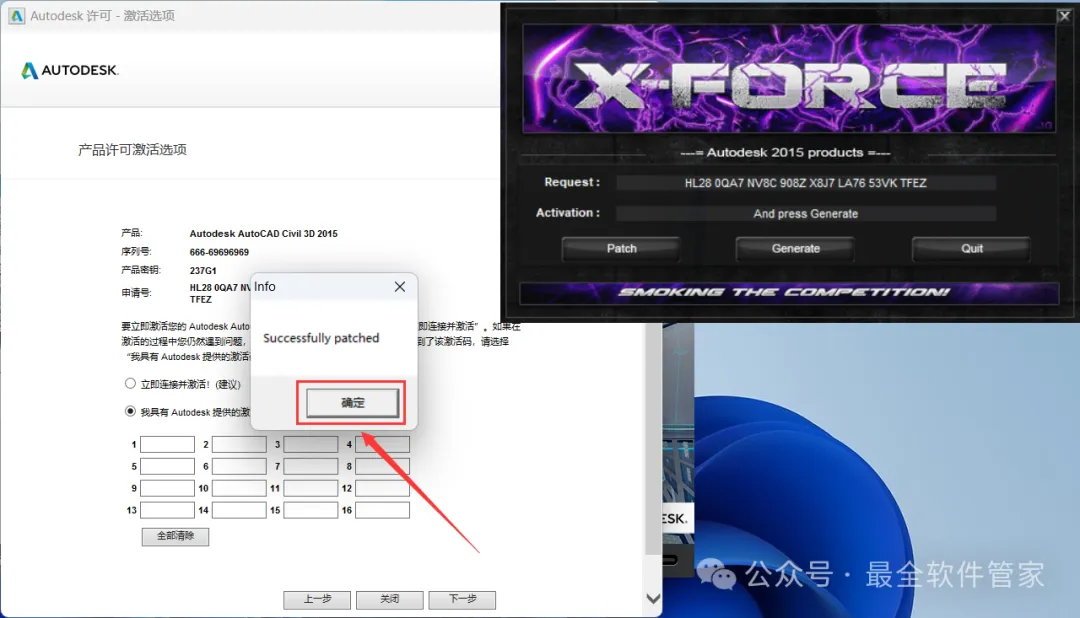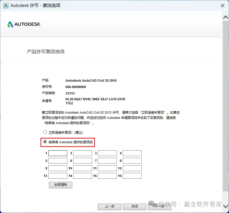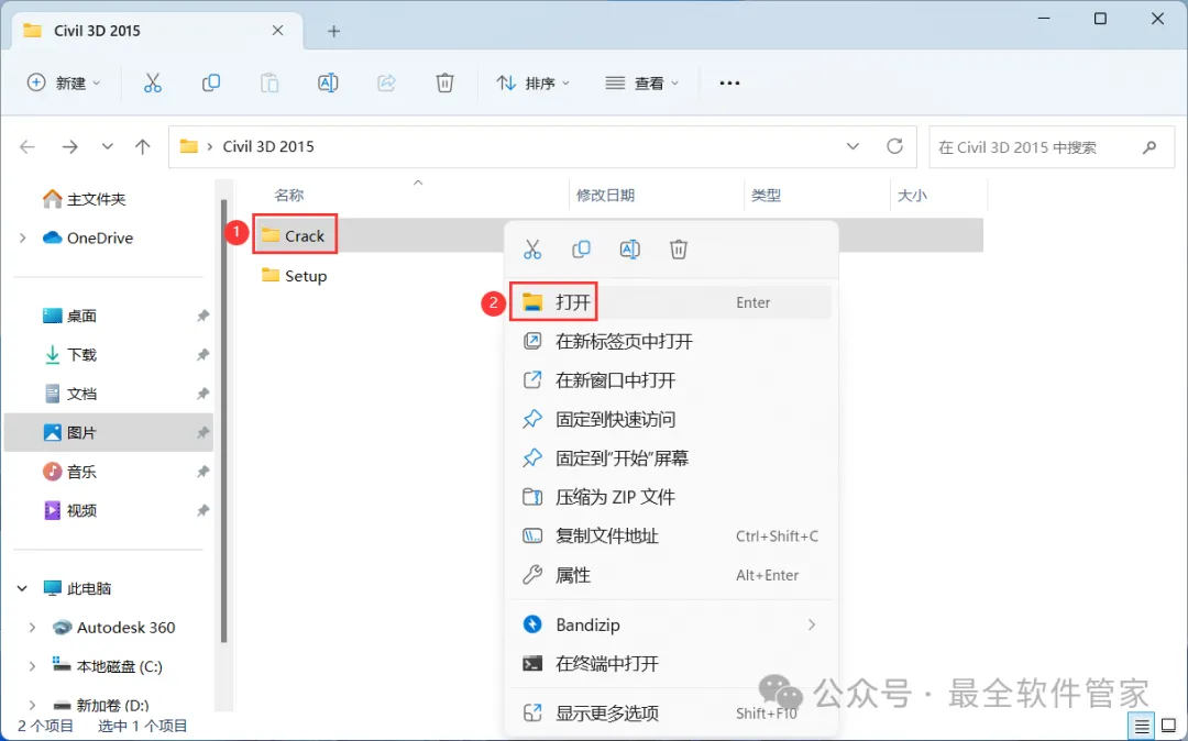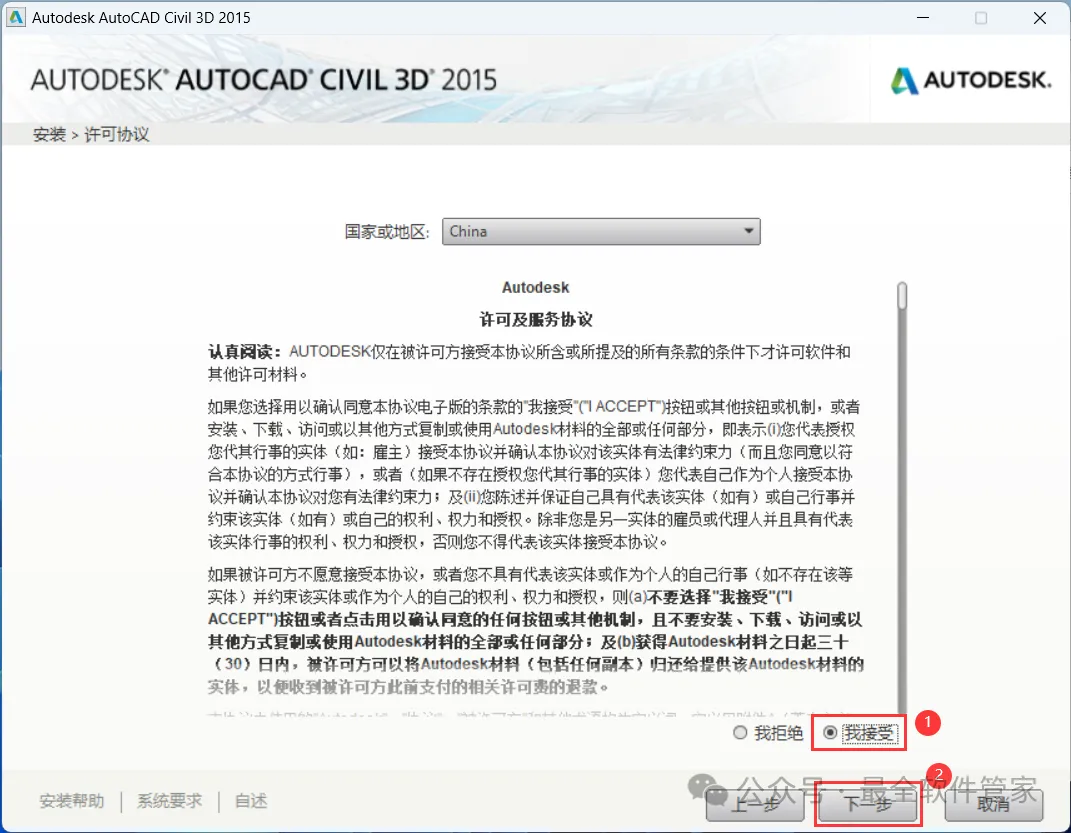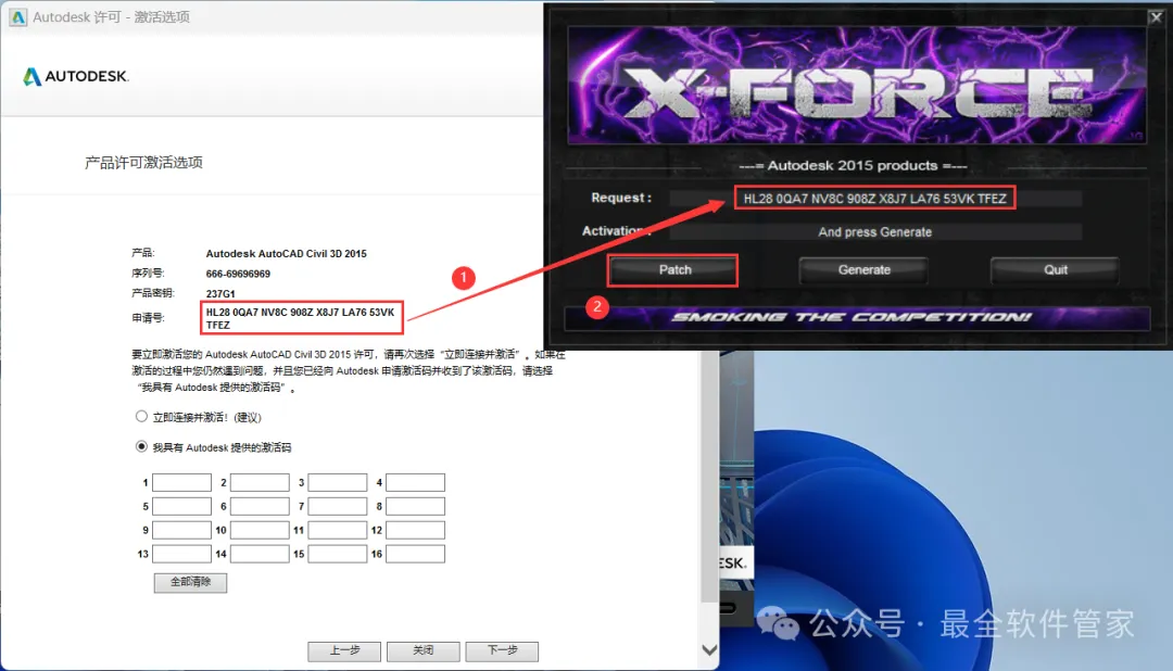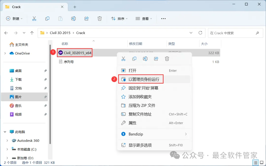 安装需知[软件名称]:Civil 3D 2015[软件大小]:4.87G[软件语言]:中文简体[安装环境]:Win7及以上版本[下载地址]:公众号内回复:Civil3D[不限速下载]:免费获取百度网盘不限速下载工具。公众号内回复:不限速[注意事项]:安装前请关闭网络、杀毒软件和防火墙,否则易安装失败。公众号内回复:1[解压软件]:小编用的解压软件是Bandizip,获取Bandizip软件安装包。公众号内回复:2安装教程1、下载Civil 3D 2015软件安装包到电脑上,右键选择【解压到Civil 3D 2015\】2、右键【打开】解压后的文件夹 3、找到【Setup】文件夹,右键【打开】它4、找到【Setup】应用程序,右键选择【以管理员身份运行】它 5、点击【安装】6、勾选【我接受】,再点击【下一步】 7、序列号输入:666-69696969,产品密钥输入:237G1,再点击【下一步】8、软件默认安装在C盘,可自定义更改软件安装位置,这里小编选择安装在D盘;点击【安装】9、软件安装中,稍等片刻 10、软件安装成功,点击【完成】11、回到桌面,右键桌面上的【Civil 3D 2015软件图标】,点击【打开】12、软件正在打开,启动界面如下:13、勾选【我已阅读】,再点击【我同意】 14、点击【激活】 15、点击【关闭】 16、点击右上角【关闭按钮】17、回到桌面,右键桌面上的【Civil 3D 2015软件图标】,点击【打开】 18、点击【激活】 19、点击【我具有Autodesk提供的激活码】 20、回到Civil 3D 2015文件夹,找到【Crack】文件夹,右键【打开】它21、找到【Civil_3D2015_x64】程序,右键选择【以管理员身份运行】它22、打开软件界面,将软件的【申请号】填入到程序的【Requset】内,再点击【Patch】23、点击【确定】 24、点击【Generate】25、将程序的【Activation】填入到软件的【激活码】内,再点击【下一步】 26、点击【完成】27、点击【确定】 28、软件打开成功,运行界面如下:29、以上就是Civil 3D 2015软件安装的全过程,要是对你有帮助的话,请为小编点个赞! 免责声明:软件资源均来源于网络,仅供用户交流学习与研究使用,版权归属原版权方所有,版权争议与本公众号无关,用户本人下载后不能用作商业或非法用途,否则后果均由用户承担责任;如果您访问和下载此文件,表示您同意只将此软件用于参考、学习而非其他用途,否则一切后果请您自行承担,请于下载后24小时内删除,不允许用于商业用途,否则法律问题自行承担。如果您喜欢该软件,请支持正版软件,购买注册,得到更好的正版服务。