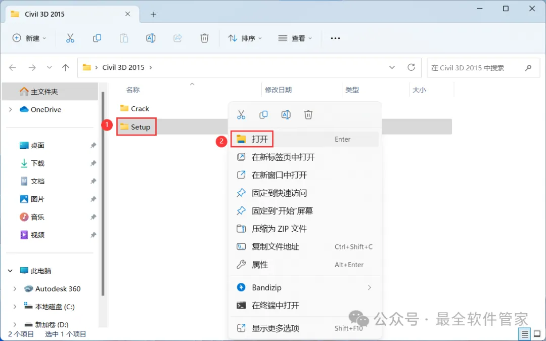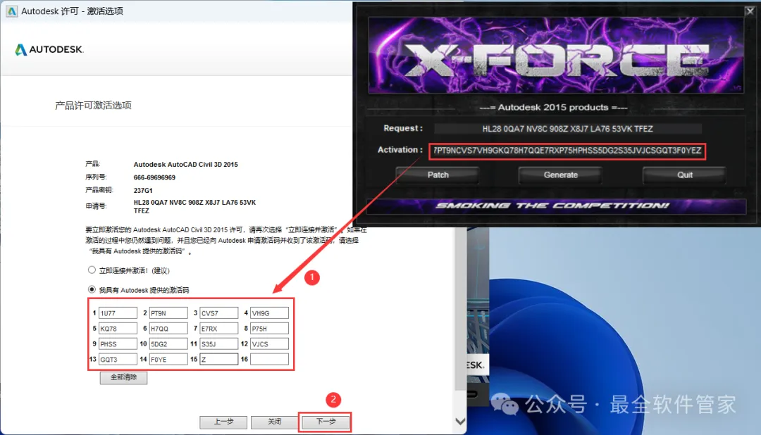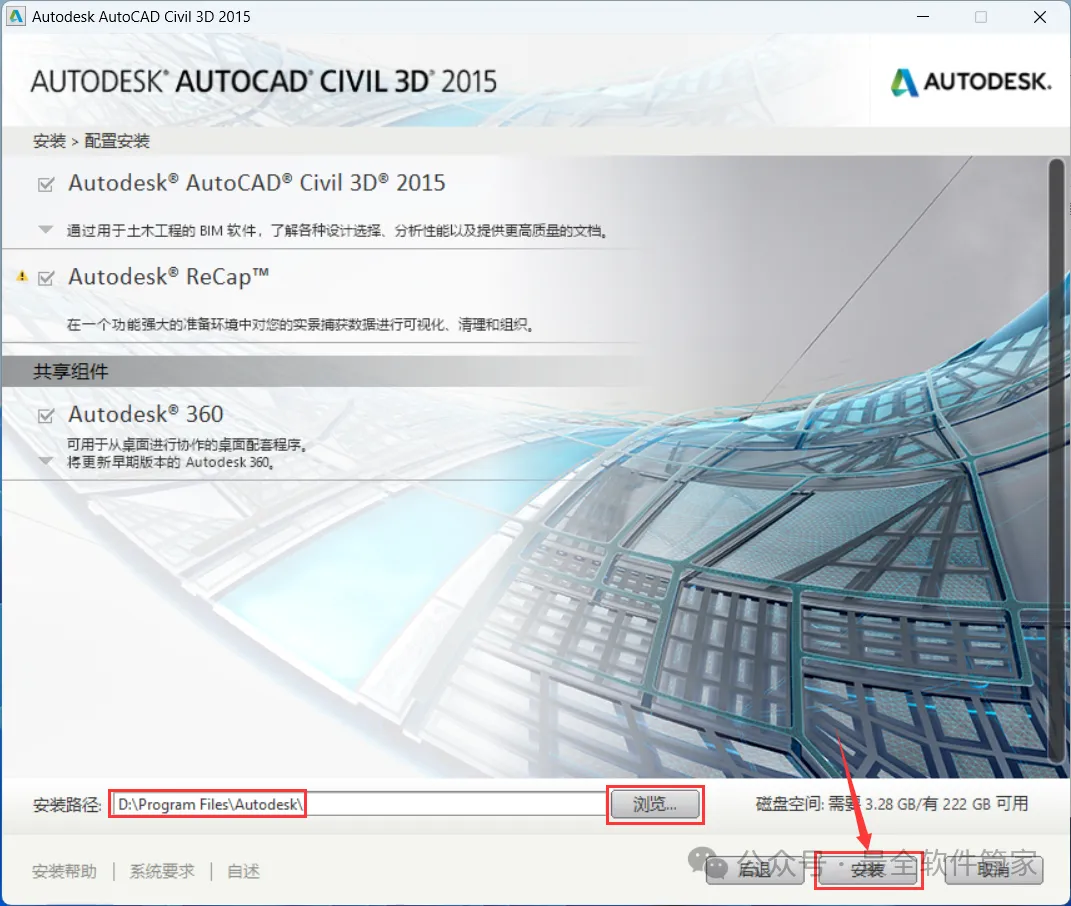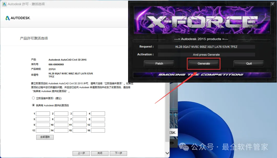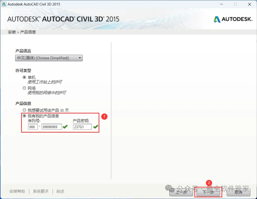 安装需知[软件名称]:Civil 3D 2015[软件大小]:4.87G[软件语言]:中文简体[安装环境]:Win7及以上版本[下载地址]:公众号内回复:Civil3D[不限速下载]:免费获取百度网盘不限速下载工具。公众号内回复:不限速[注意事项]:安装前请关闭网络、杀毒软件和防火墙,否则易安装失败。公众号内回复:1[解压软件]:小编用的解压软件是Bandizip,获取Bandizip软件安装包。公众号内回复:2安装教程1、下载Civil 3D 2015软件安装包到电脑上,右键选择【解压到Civil 3D 2015\】2、右键【打开】解压后的文件夹 3、找到【Setup】文件夹,右键【打开】它4、找到【Setup】应用程序,右键选择【以管理员身份运行】它 5、点击【安装】6、勾选【我接受】,再点击【下一步】 7、序列号输入:666-69696969,产品密钥输入:237G1,再点击【下一步】8、软件默认安装在C盘,可自定义更改软件安装位置,这里小编选择安装在D盘;点击【安装】9、软件安装中,稍等片刻 10、软件安装成功,点击【完成】11、回到桌面,右键桌面上的【Civil 3D 2015软件图标】,点击【打开】12、软件正在打开,启动界面如下:13、勾选【我已阅读】,再点击【我同意】 14、点击【激活】 15、点击【关闭】 16、点击右上角【关闭按钮】17、回到桌面,右键桌面上的【Civil 3D 2015软件图标】,点击【打开】 18、点击【激活】 19、点击【我具有Autodesk提供的激活码】 20、回到Civil 3D 2015文件夹,找到【Crack】文件夹,右键【打开】它21、找到【Civil_3D2015_x64】程序,右键选择【以管理员身份运行】它22、打开软件界面,将软件的【申请号】填入到程序的【Requset】内,再点击【Patch】23、点击【确定】 24、点击【Generate】25、将程序的【Activation】填入到软件的【激活码】内,再点击【下一步】 26、点击【完成】27、点击【确定】 28、软件打开成功,运行界面如下:29、以上就是Civil 3D 2015软件安装的全过程,要是对你有帮助的话,请为小编点个赞! 免责声明:软件资源均来源于网络,仅供用户交流学习与研究使用,版权归属原版权方所有,版权争议与本公众号无关,用户本人下载后不能用作商业或非法用途,否则后果均由用户承担责任;如果您访问和下载此文件,表示您同意只将此软件用于参考、学习而非其他用途,否则一切后果请您自行承担,请于下载后24小时内删除,不允许用于商业用途,否则法律问题自行承担。如果您喜欢该软件,请支持正版软件,购买注册,得到更好的正版服务。