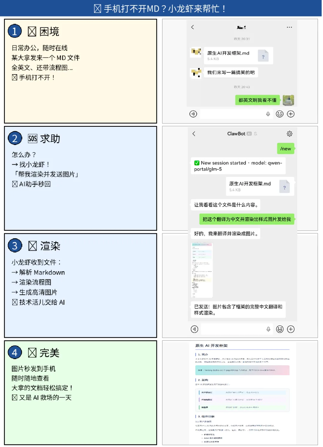 某大拿发一个md文件,全英文、包含流程图、手机打不开,怎么办?求助龙虾,帮我翻译并渲染发送最终图片给我。4、帮我管理数据库