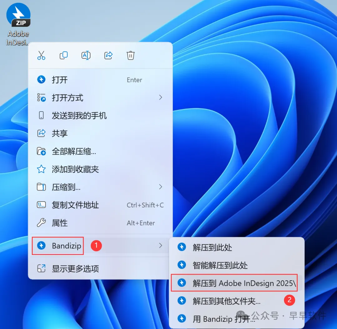 1、下载Adobe InDesign 2025软件安装包到电脑上,右键选择【解压到Adobe InDesign 2025\】