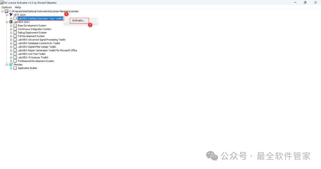 [不限速下载]:免费获取百度网盘不限速下载工具。公众号内回复:不限速[注意事项]:安装前请关闭网络、杀毒软件和防火墙,否则易安装失败。公众号内回复:1[解压软件]:小编用的解压软件是Bandizip,获取Bandizip软件安装包。公众号内回复:21、下载LabVIEW 2024软件安装包到电脑上,右键选择【解压到LabVIEW 2024\】4、找到【Install】应用程序,右键选择【以管理员身份运行】它16、回到LabVIEW 2024文件夹,找到【Keygen】应用程序,右键选择【以管理员身份运行】它17、右键全部未选中的选项,点击【Activator】20、回到桌面,点击任务栏的【开始菜单】,在【所有应用】中找到【NI LabVIEW 2024 Q1软件图标】,将软件图标拖到桌面上,完成软件桌面快捷方式的创建21、右键桌面上的【NI LabVIEW 2024软件图标】,点击【打开】24、以上就是LabVIEW 2024软件安装的全过程,要是对你有帮助的话,请为小编点个赞!免责声明:软件资源均来源于网络,仅供用户交流学习与研究使用,版权归属原版权方所有,版权争议与本公众号无关,用户本人下载后不能用作商业或非法用途,否则后果均由用户承担责任;如果您访问和下载此文件,表示您同意只将此软件用于参考、学习而非其他用途,否则一切后果请您自行承担,请于下载后24小时内删除,不允许用于商业用途,否则法律问题自行承担。如果您喜欢该软件,请支持正版软件,购买注册,得到更好的正版服务。