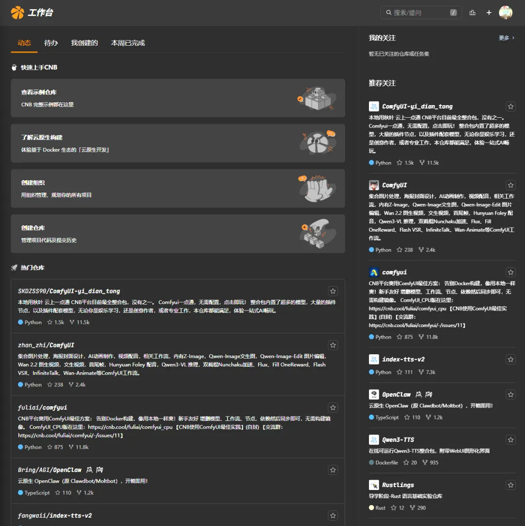 CNB平台地址:https://cnb.cool/CNB每月提供了免费的CPU/GPU使用额度,日常使用足够。2、FORK