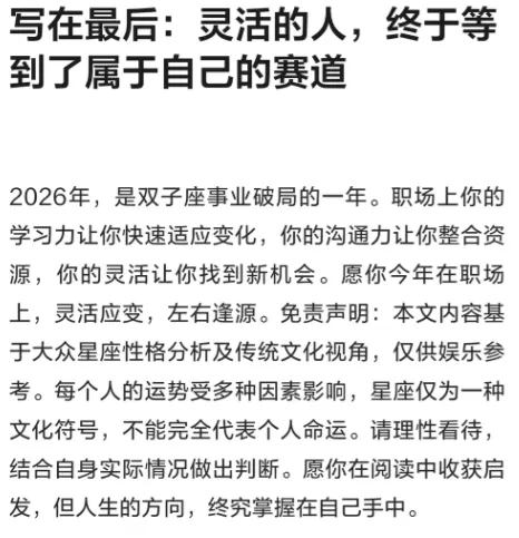 建议其他星座2026年直接卸载手机,因为打开任何APP都在推送双子座的好运!
