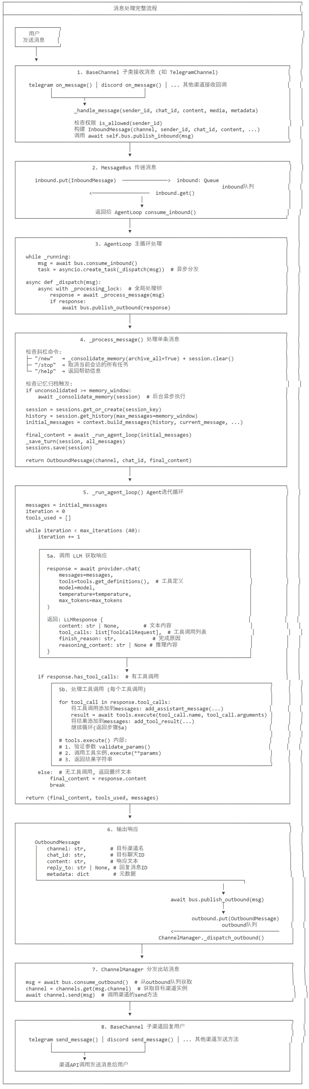 我们梳理下Nanobot 消息分发机制,后续文章会针对各个环节进行解析学习。